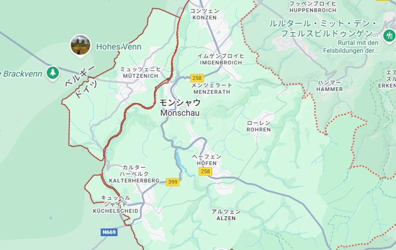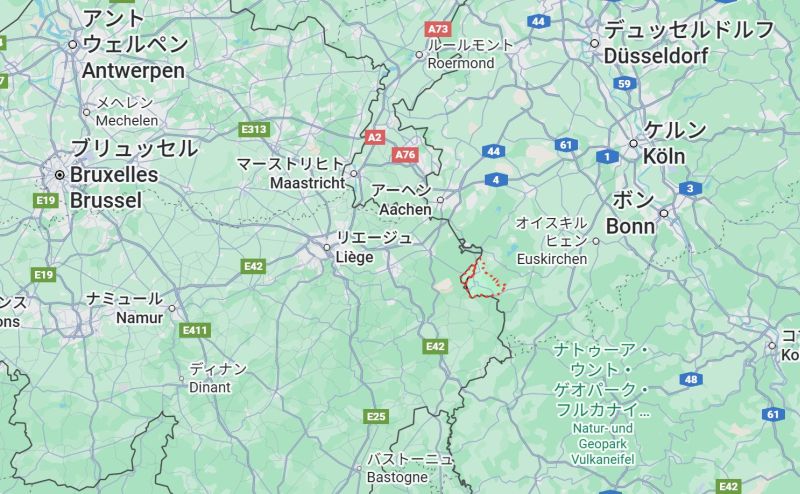 途中で「ドイツ→ベルギー→ドイツ」と国境線を2回通ることになります