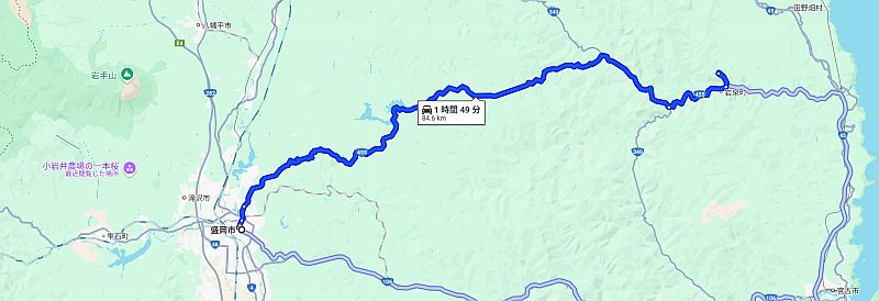盛岡市から岩泉町にある龍泉洞という鍾乳洞に行く途中に立ち寄りました マップの真ん中あたりに1時間49分と書かれた枠の左の湖です