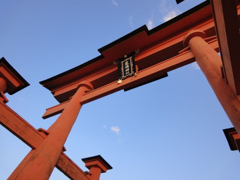厳島神社社殿から160mの位置に立っていて、高さは16.6mと木造の鳥居としては日本最大級です