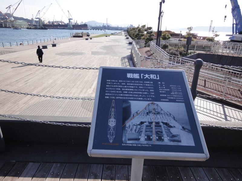 大和波止場といわれる「大和」の前甲板をイメージした公園で、正面の端までが原寸大とのことです
