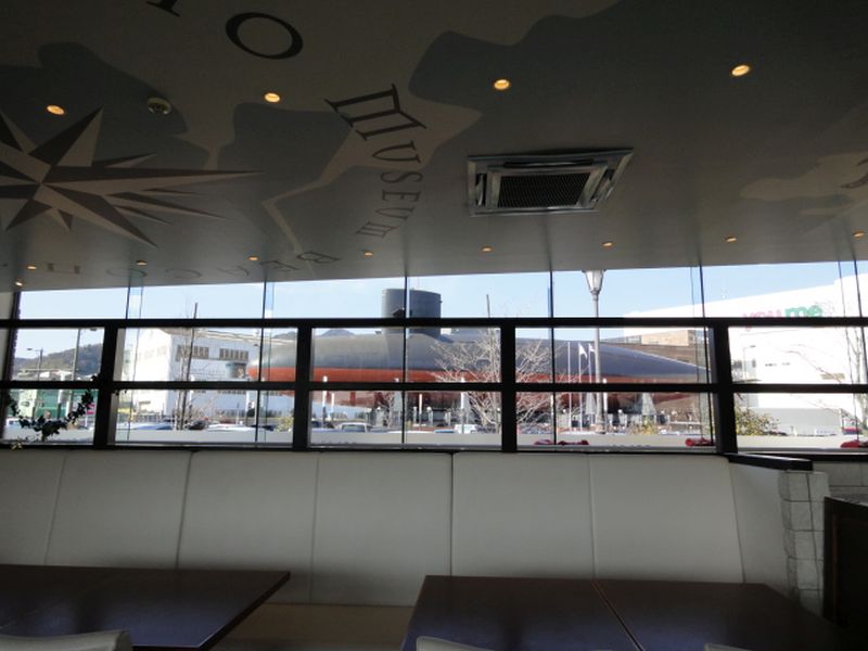 店内からは先ほどの潜水艦「あきしお」を眺めることが出来ます