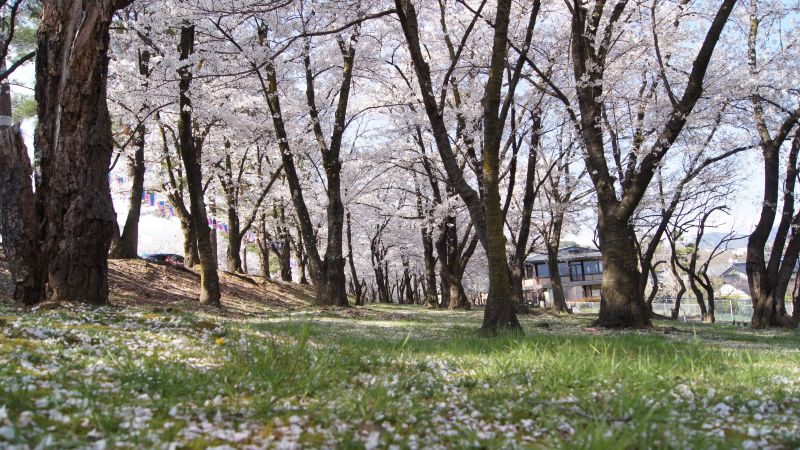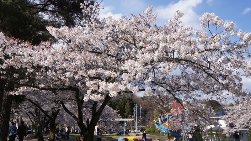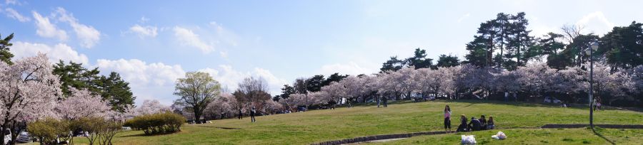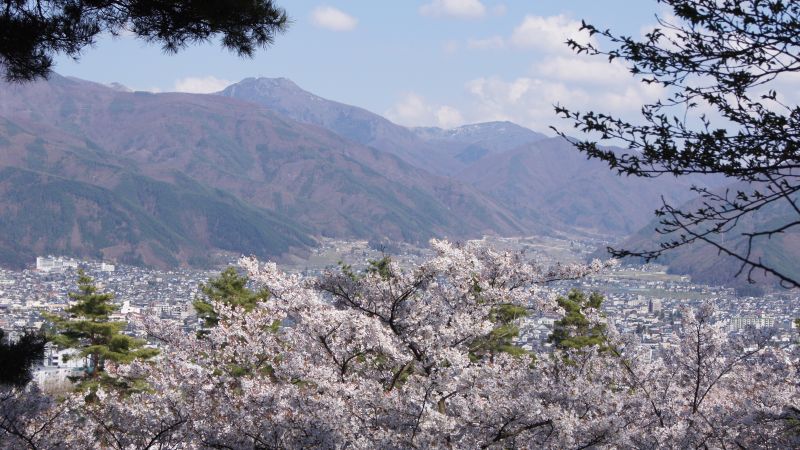 松本盆地というか松本平(だいら)が桜の向こうに広がっています