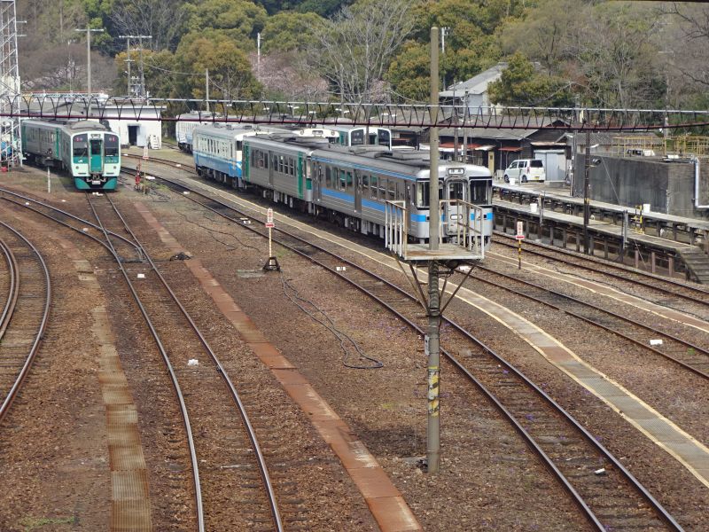 こ線橋に上ると車両基地がよく見えます