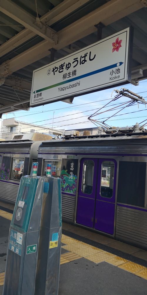 「菖蒲」車両に乗って、ひと駅先の柳生橋で下車