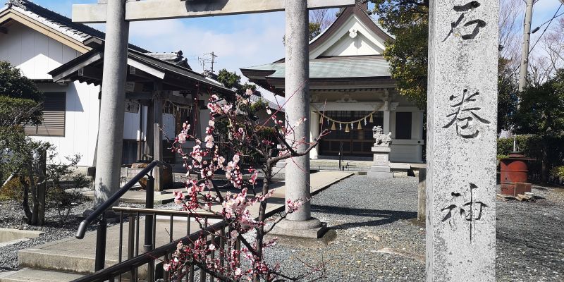 目的地まで歩いていると神社で梅が咲いていました