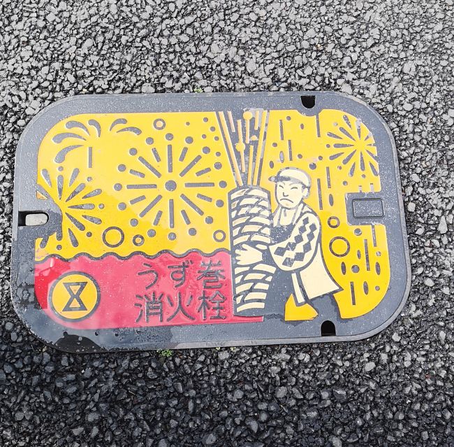 消火栓のフタが手筒花火モチーフでした