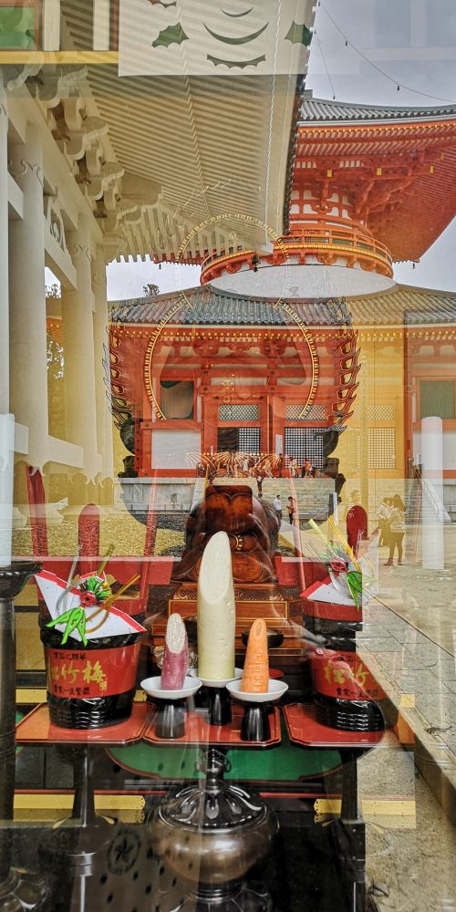 ガラスに根本大塔が映りこんでいたので撮ってみました