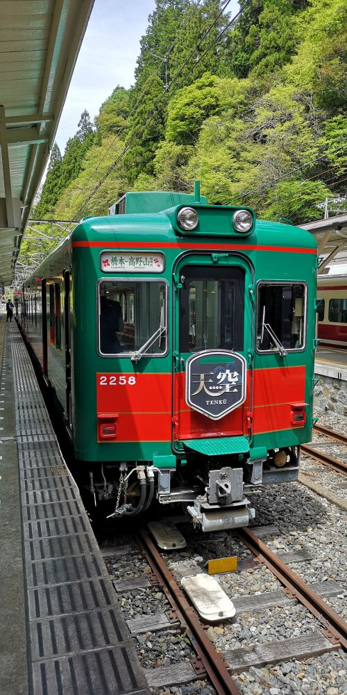 南海高野線の専用列車天空がたまたま極楽橋駅に停まっていました