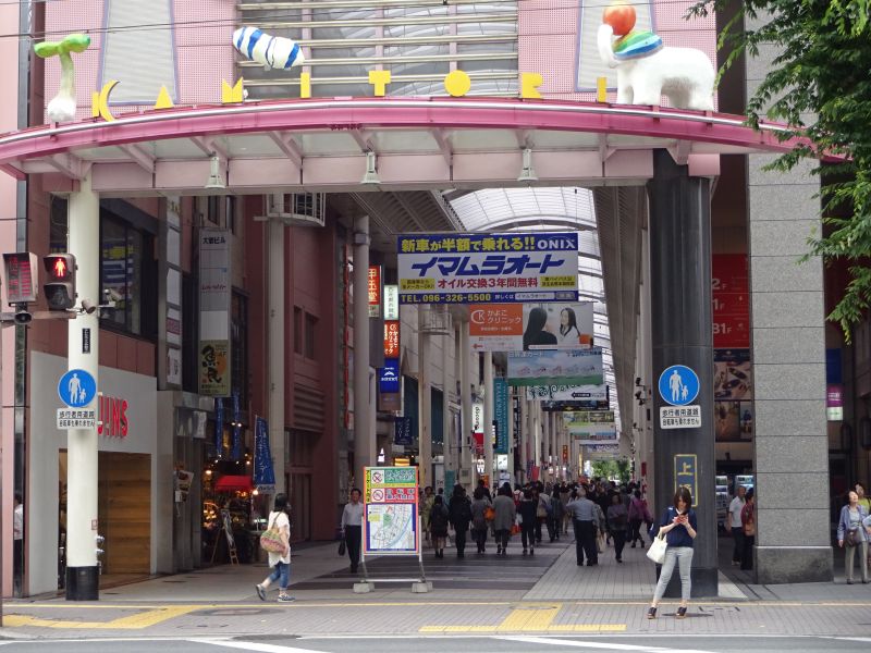 お城の見えるこの付近は熊本の繁華街で人通りが多いです