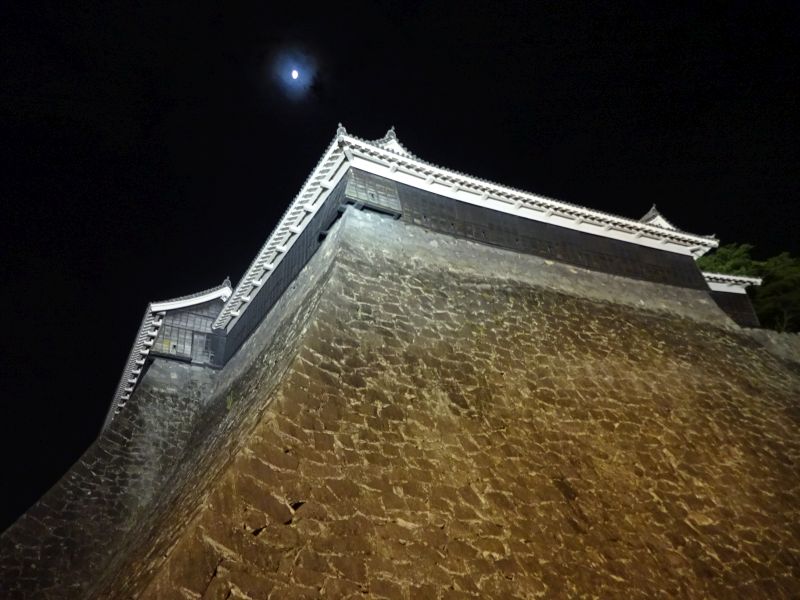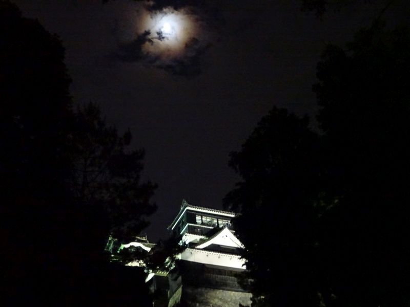 お月様と熊本城を眺めながら今日のホテルへ