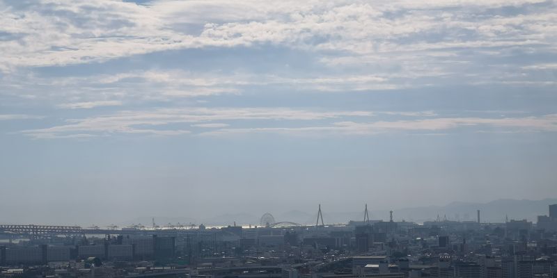 さらにその向こうが神戸で六甲・摩耶山系が連なっています