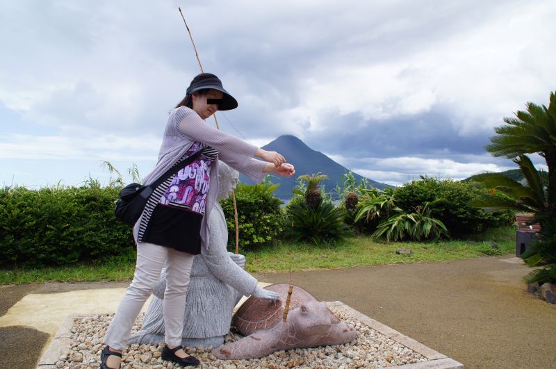 前には薩摩富士とも呼ばれる開聞岳がそびえています