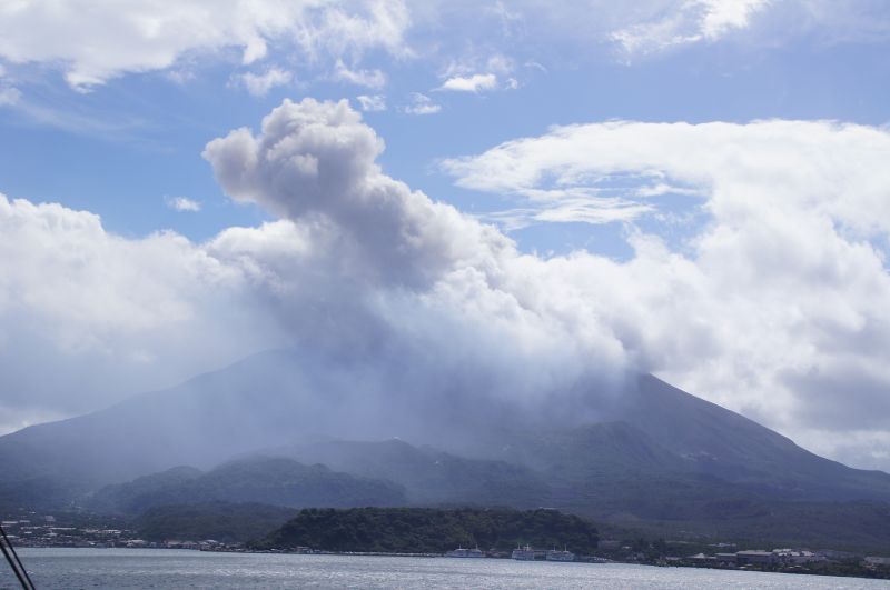 白い雲と黒い噴煙がだんだん混ざっていきなにも無かったように・・・というところで、ではまた次回