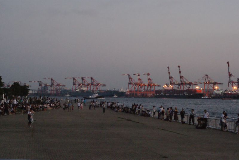 左手にもたくさんのクレーンが並んでいました