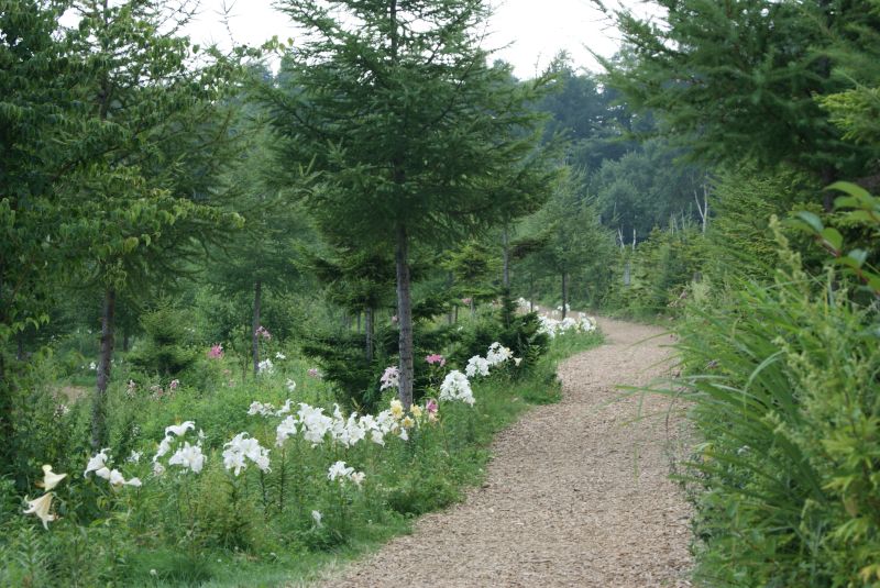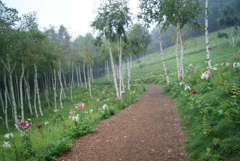 道にはウッドチップが敷き詰められていて歩くとフカフカしています