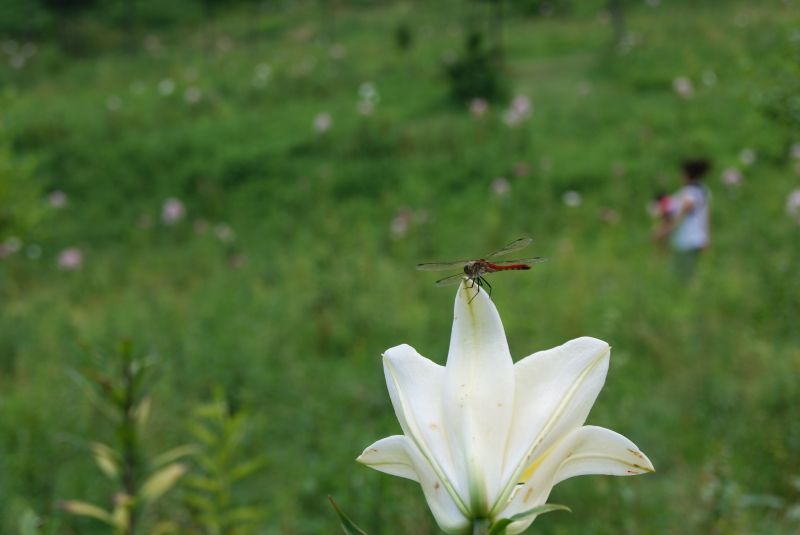 白いユリに赤とんぼ なんか紅白でめでたい?(笑)