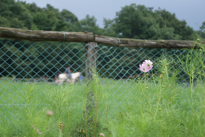 揺れるコスモスの向こうには白馬にまたがった王子様(?)が・・・