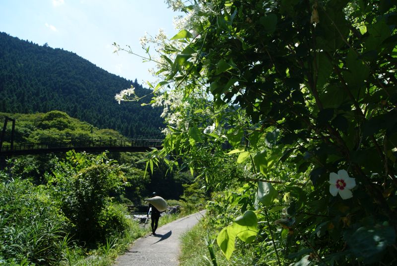 吊り橋を渡って道なりに上流へと向かいます