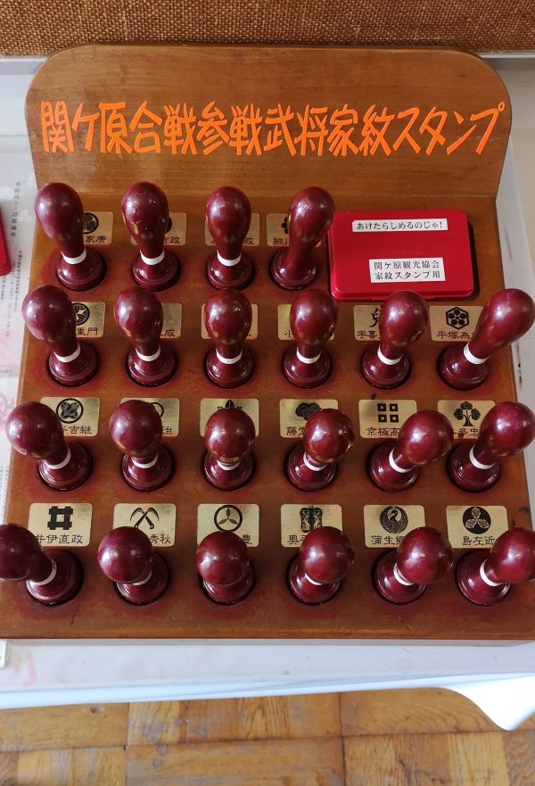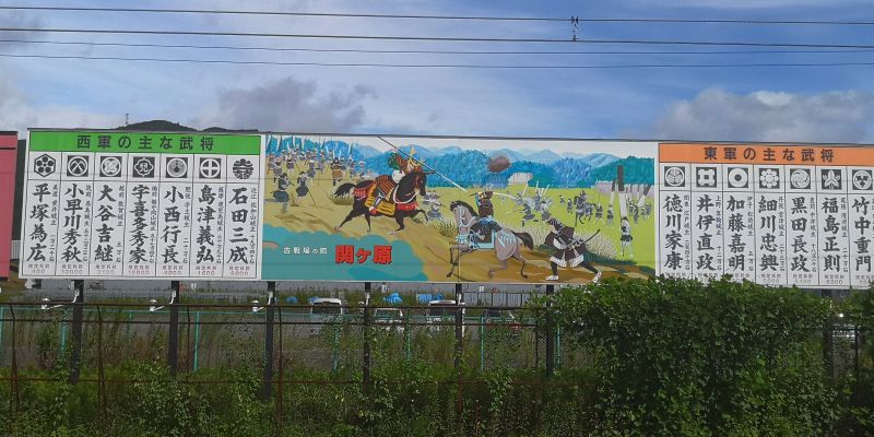 駅のホームからは関ケ原の戦いに参戦した東西両軍の武将の名前が書かれた看板が眺められます