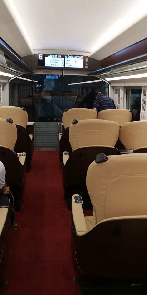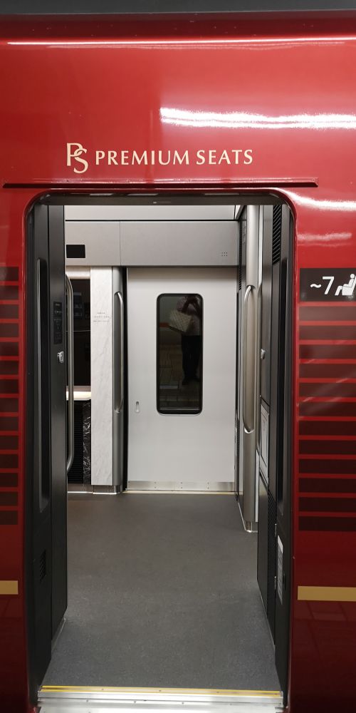 先頭1号車と最後尾6号車の車両は3列のプレミアムシートで