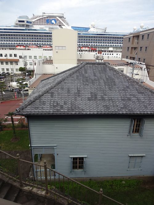 前回ご紹介したサファイア・プリンセスが向こうの方に見えました