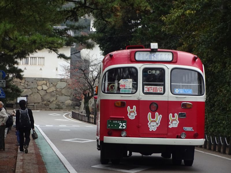 なんて歩いていると後姿が何ともレトロなバスが☆ ひこにゃんが元気そうで何より♪