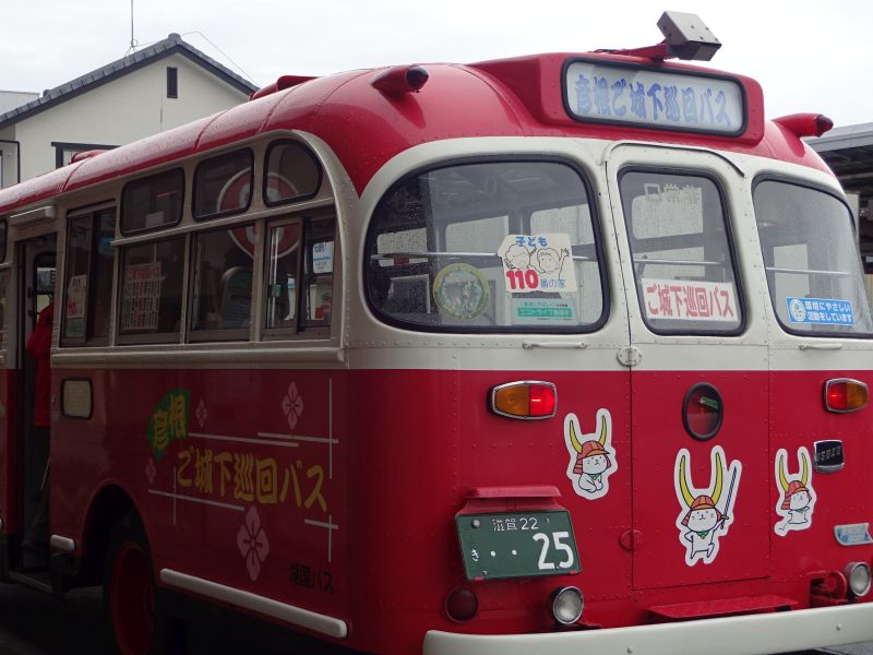 11:00 来る時に見かけたレトロバスなひこにゃんバスが駅に停まっていました