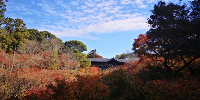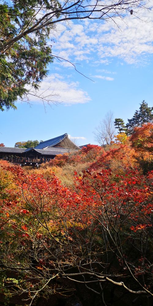 記憶違いで無ければ紅葉の向こうに東福寺の通天橋が顔をのぞかせていました