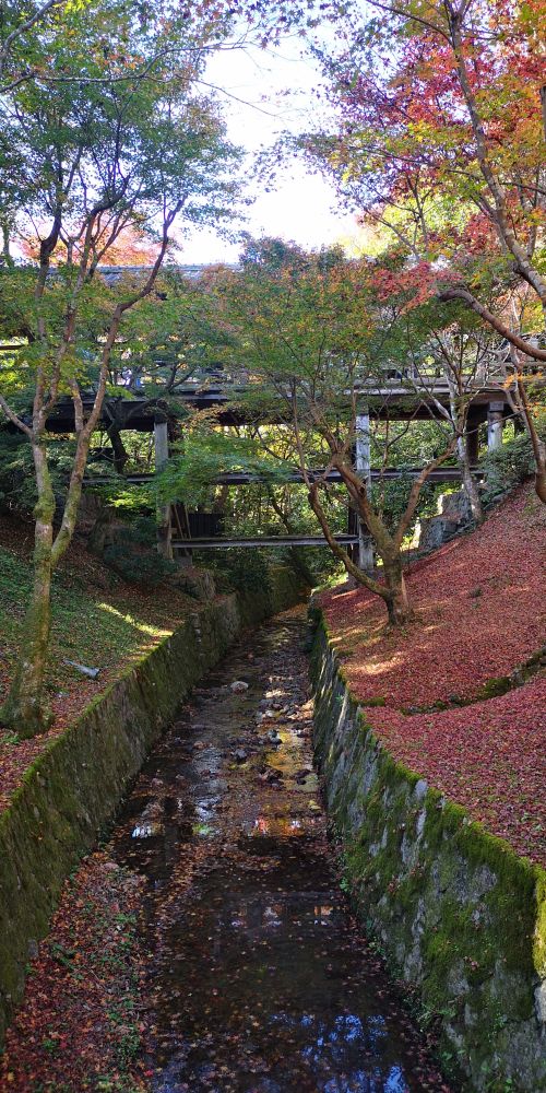 下には小川を静かに水が流れ 散った紅葉を運んでいます